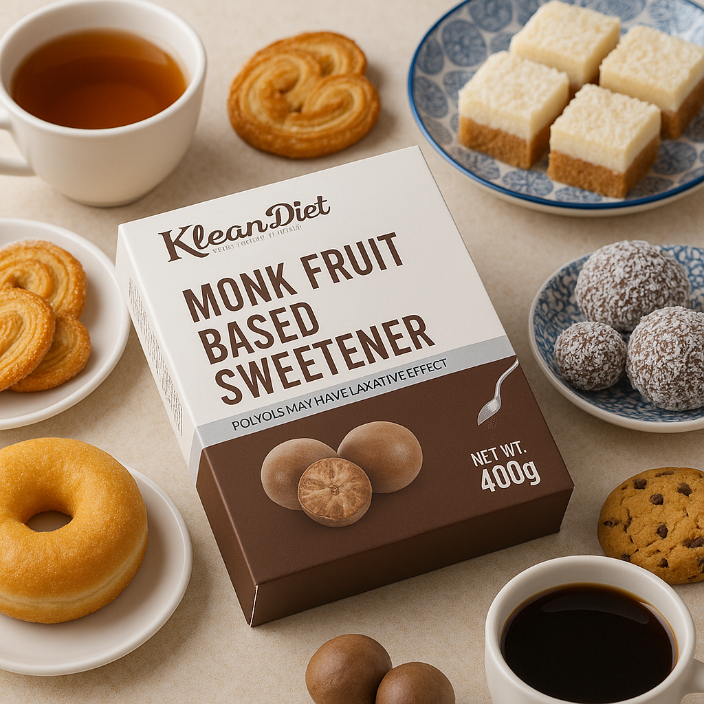Monk Fruit Sweetener is a natural, zero-calorie sweetener derived from monk fruit. It contains no sugar and has zero glycemic index.
